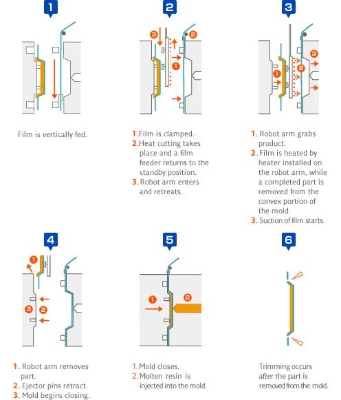 (5) 薄膜與塑膠材料注塑成為零件。IME 產品既具有模內裝飾工藝的美觀與環(huán)保,又一體成型實現(xiàn)了功能與結構裝飾的無縫結合,因此被廣泛應用于汽車、飛機及家電領域。